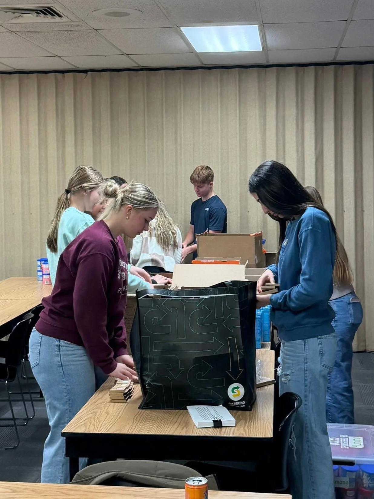 YAC members packing birthday kits.